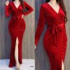 DISCOUNT: Wholesale Women’s Clothing Manufacturers Wholesale Merter Textile Wholesalers Single Sleeve Shoulder Low Cut Silvery Velvet Evening Dress 12 $ – 6 Colors – 2 S, 2 M, 2 L Sizes – WGS 582370