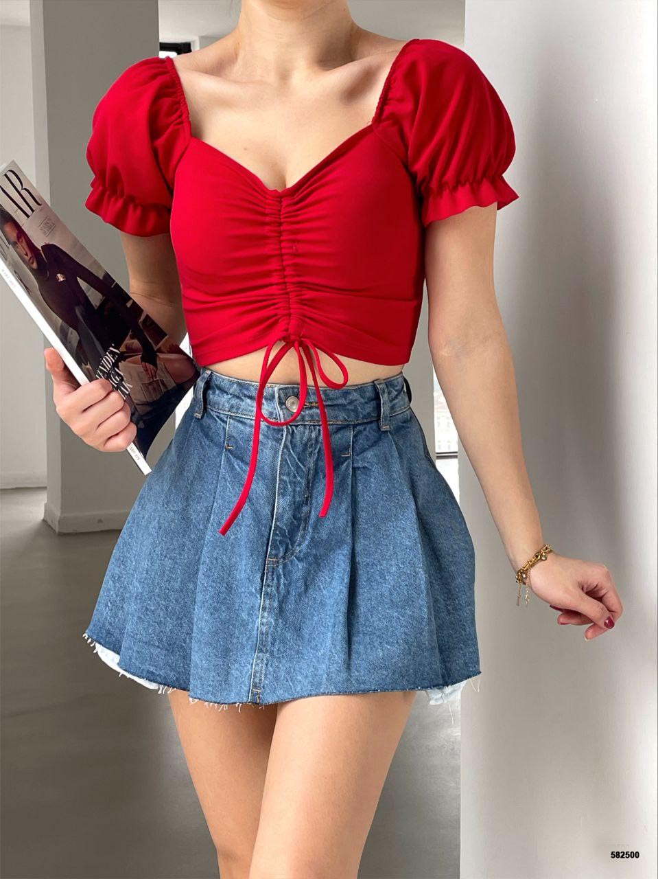 Merter Toptan Tekstil Wholesale Bayan Giyim İmalatçıları Önü Tünelli Karpuz Kol Krep Bluz – 6 Renk – WGS 582500