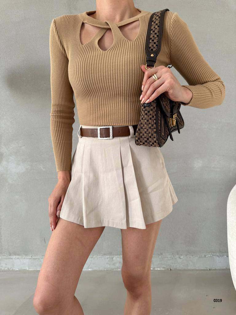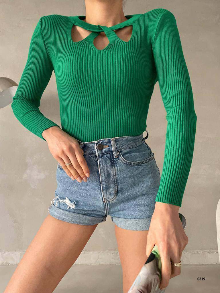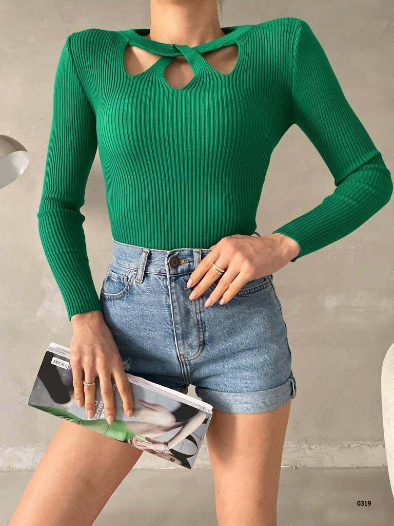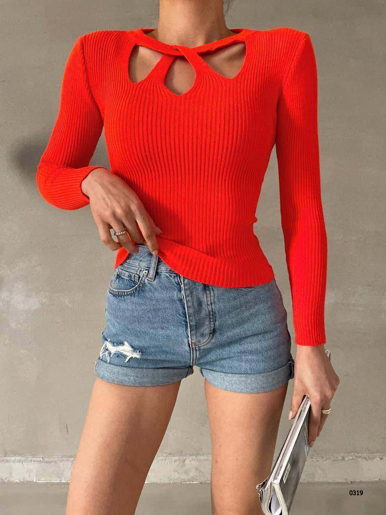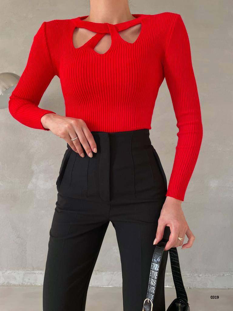 Merter Toptan Tekstil Wholesale Bayan Giyim İmalatçıları Göğüs Pencereli Yaka Detay Fitilli Triko Kazak – 7 Renk – WGS 0319