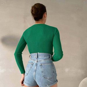 Wholesale Women’s Clothing Merter Textile Manufacturers Chest Window Collar Detail Ribbed Knitwear Sweater 5.5 $ – 7 Colors – Standard Size 6-Piece Series – WGS 0319